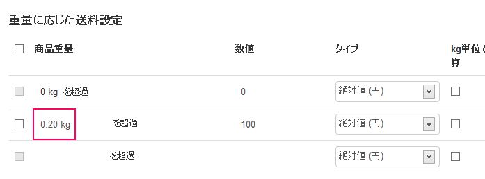 重量に応じた送料設定